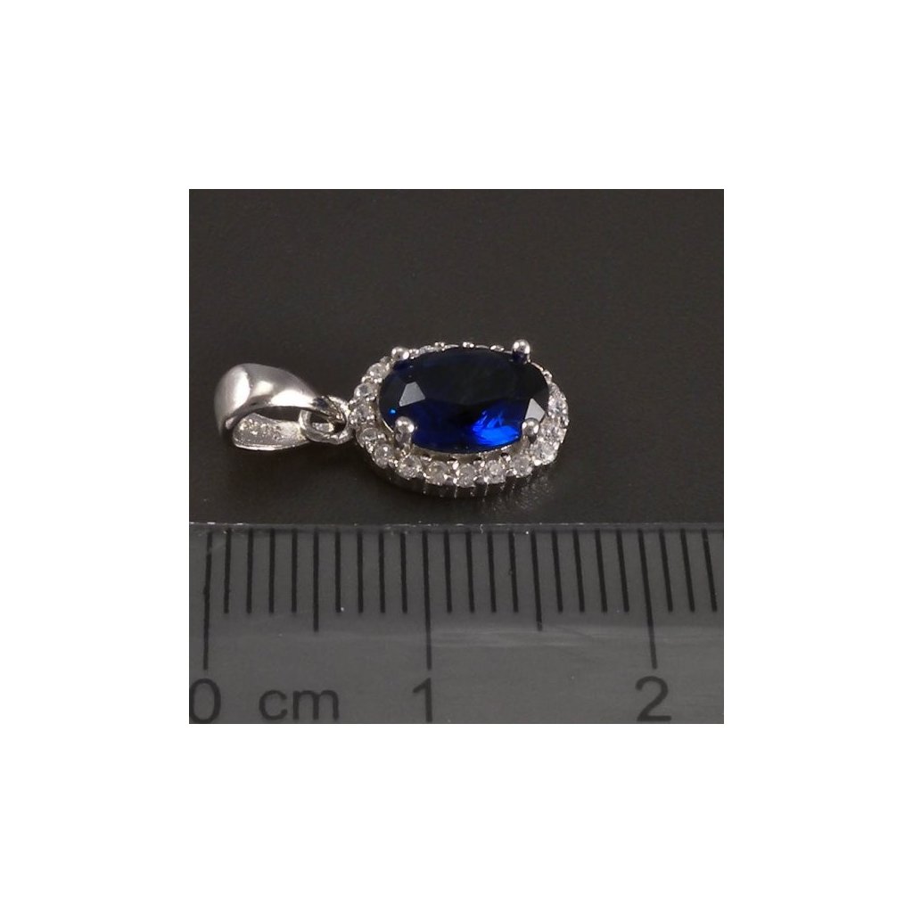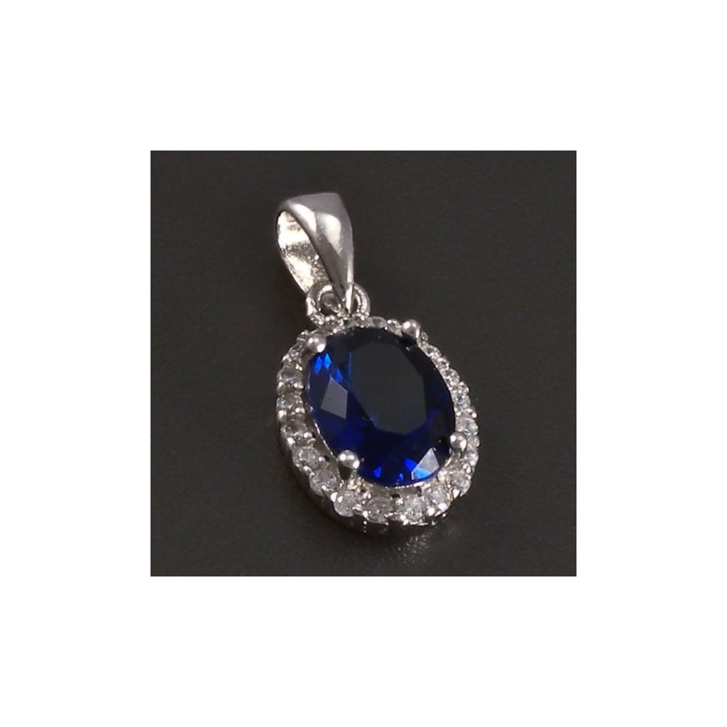 Stříbrný přívěs oválný safír a zirkony