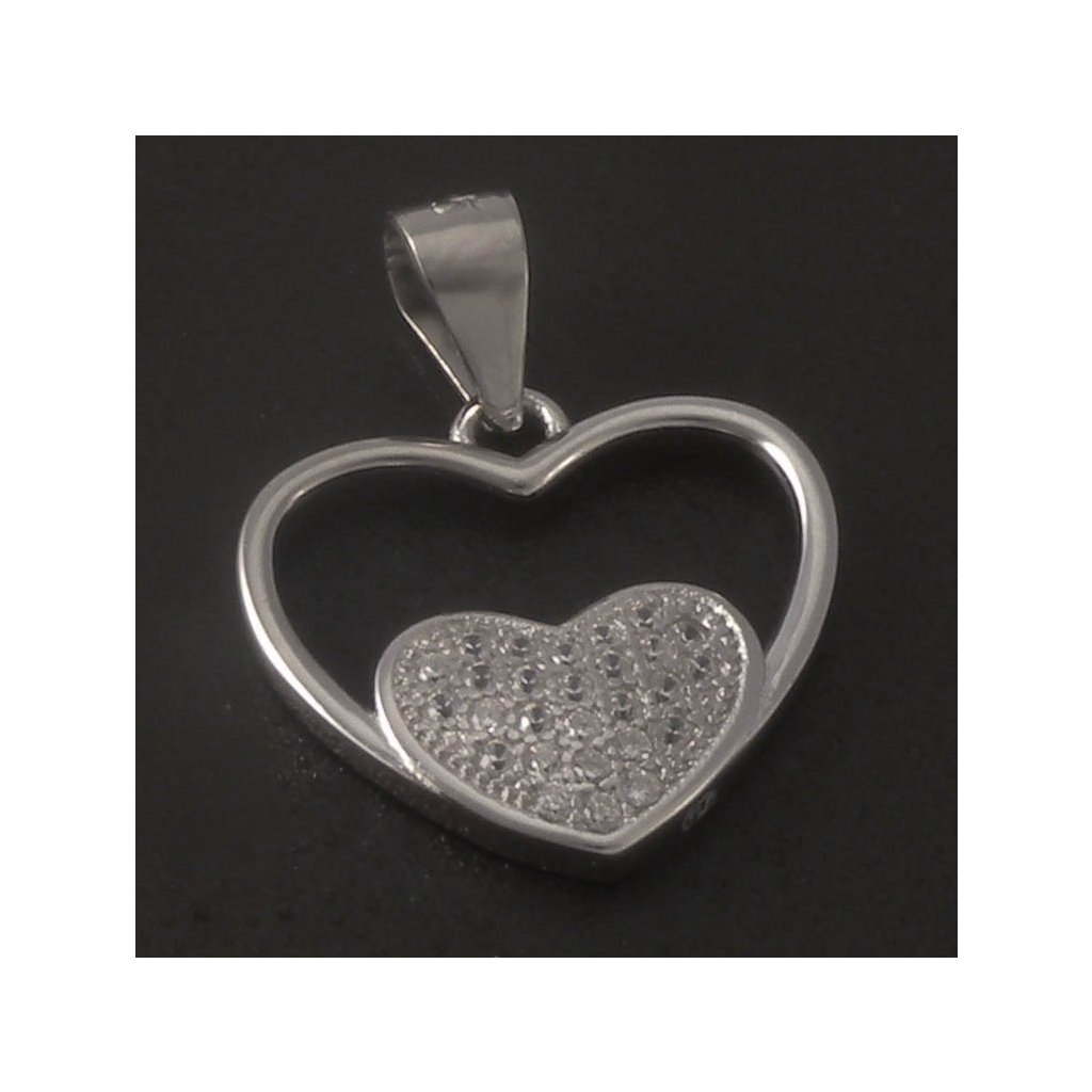 Stříbrný přívěs se zirkony srdíčko