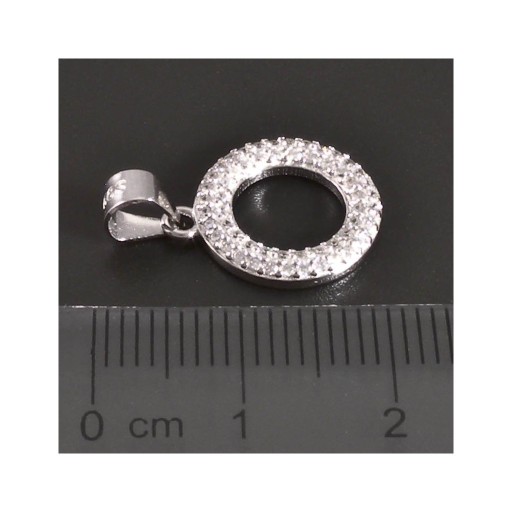 Tento přívěsek z lesklého stříbra působí jemně a zároveň moderně. Čiré zirkony jsou precizně vsazeny po celém obvodu, čímž vytvářejí efektní hru světla a dodávají šperku luxusní vzhled. Povrchová úprava rhodiem zajišťuje zářivý lesk a ochranu proti zčernání. Kruh jako motiv symbolizuje nekonečno a harmonii, díky čemuž přívěsek působí vyváženě a elegantně. Skvěle se hodí jako doplněk k náušnicím ve stejném stylu nebo jako samostatný šperk pro každodenní nošení.