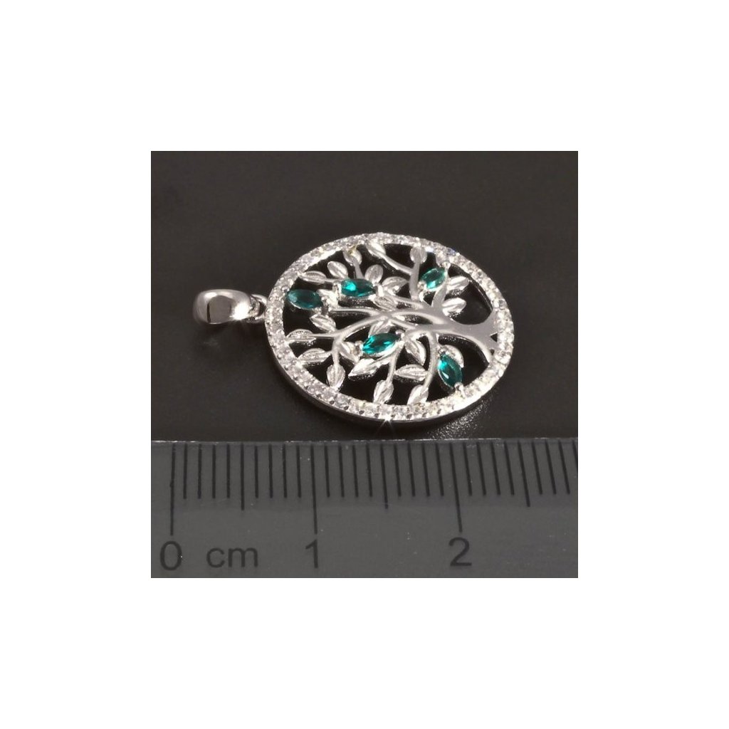 Moderní přívěsek je vyroben ze stříbra ryzosti 925/1000. Stříbrný přívěsek symbolizuje strom života a je v hladkém lesklém provedení. Strom je zdoben zelenými zirkony a celý přívěsek je kulatý. Velikost přívěsku i s ouškem je 25x19 mm. Stříbrný přívěsek je povrchově upraven rhodiem. Tento stříbrný šperk je vhodný i ke každodennímu nošení.