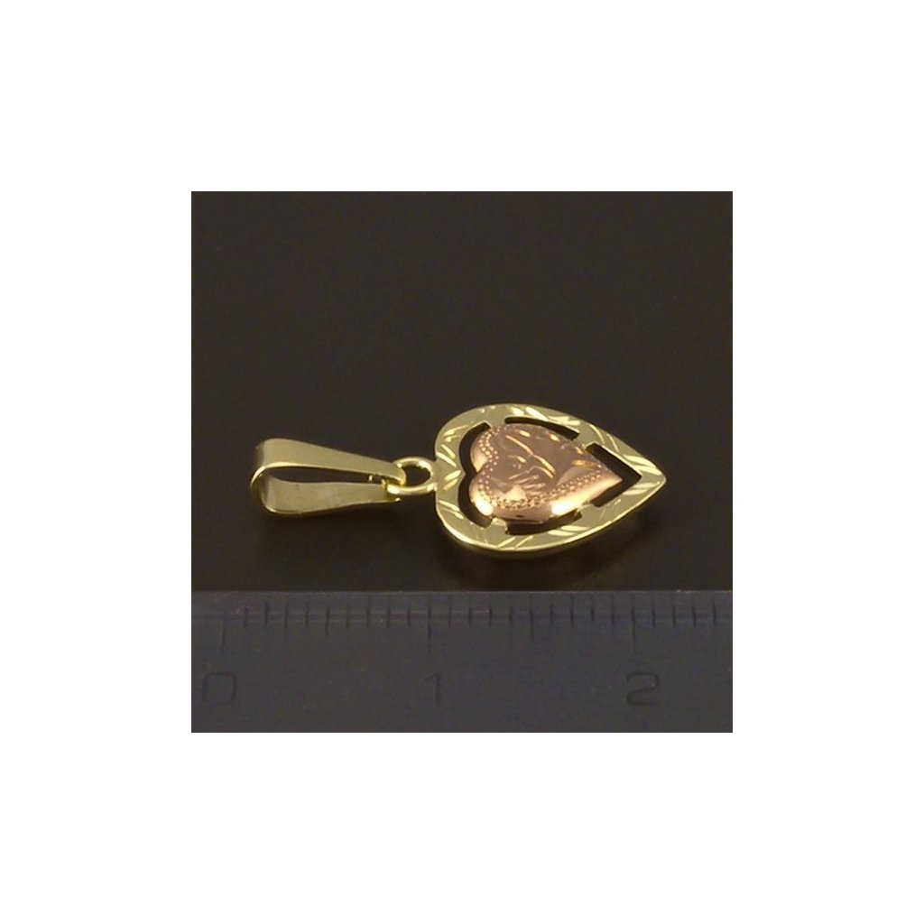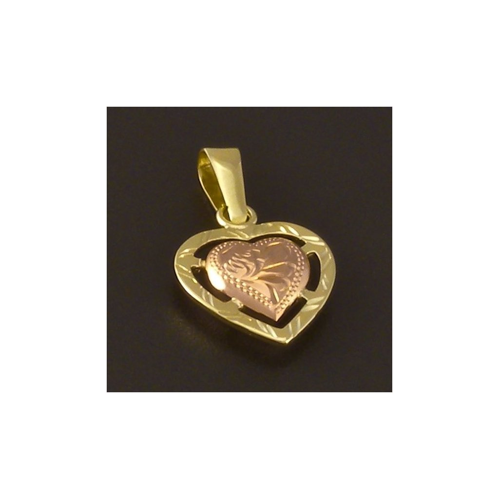Zlatý přívěsek je vyroben ze 14 karátového zlata 585/1000. Celozlatý přívěsek ve tvaru srdce je v kombinaci žluté zlato a červené zlato. Zlaté srdíčko zdobí z obou stran ruční rytina. Velikost přívěsku bez oušek je 13x12 mm. Zlatý přívěsek je vhodný na jemnější řetízek. Tento zlatý šperk je kvalitně vyroben v České republice.