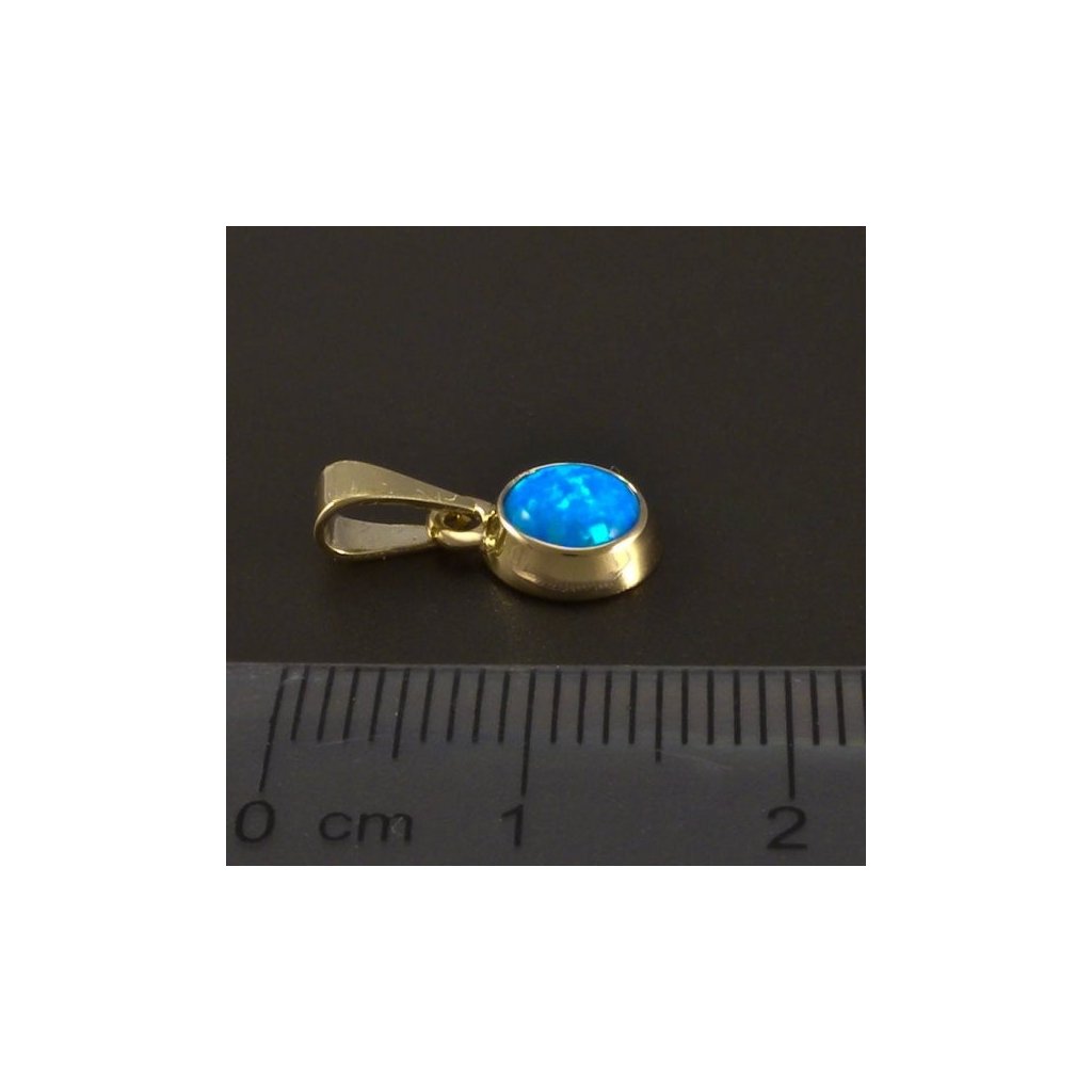 Přívěsek je vyroben ze žlutého zlata ryzosti 14kt. 585/1000. Jemný zlatý přívěsek je v hladkém lesklém provedení a rozměr celého přívěsku je 15x7,5 mm. Přívěsek je osazen krásným modrým synt. opálem kulatého tvaru. Průměr modrého opálu je 6 mm. Jednoduchý přívěsek ve žlutém zlatě je vhodný pro každý den. Doporučujeme.