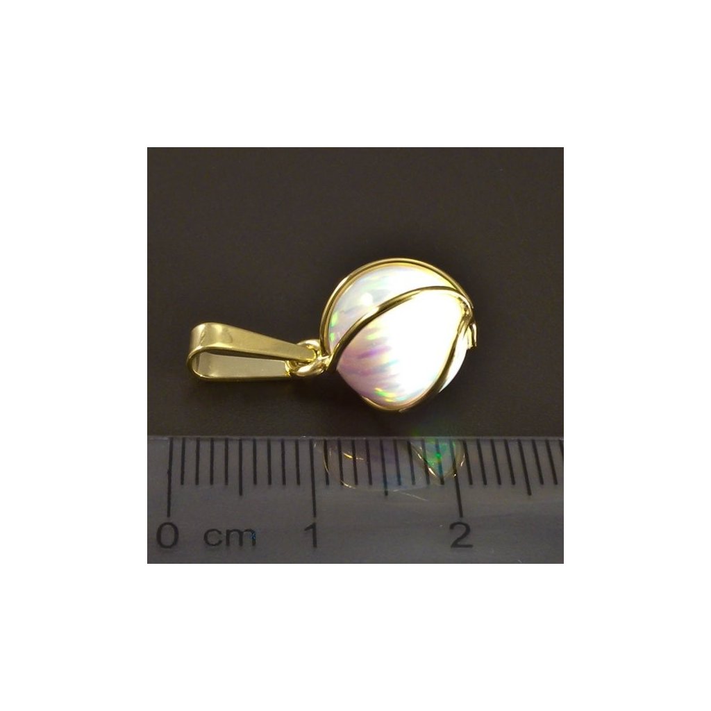 Zlatý přívěsek ve tvaru kulaté klícky ukrývá syntetický bílý opál, který okouzlí svými duhovými odlesky. Tento kámen je ceněný pro svou proměnlivou barevnost a schopnost působit vždy jinak podle dopadu světla. Minimalistické zpracování přívěsku působí vzdušně a zároveň šperku dodává originální symboliku ochrany. Tento přívěsek se skvěle hodí k pevným zlatým řetízkům a stane se elegantním detailem, který podtrhne přirozenou krásu každé ženy.