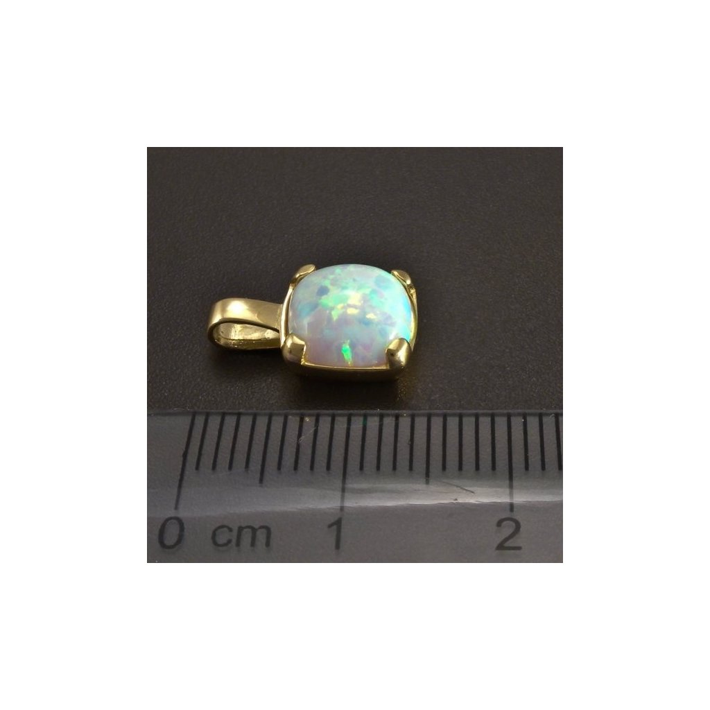 Zlatý přívěsek je zdobený syntetickým bílým opálem v čtvercovém tvaru a zaujme svým čistým designem a jemnými barevnými odlesky kamene. Díky své univerzálnosti se hodí pro každodenní nošení, ale i ke slavnostním příležitostem. Kombinuje moderní eleganci s klasickým zpracováním a krásně vynikne v kombinaci s jemným zlatým řetízkem. Tento přívěsek je symbolem ženské elegance a harmonie.