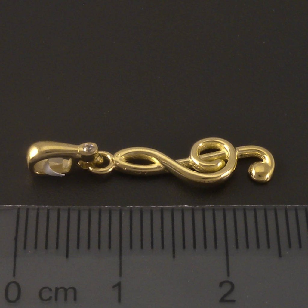 Tento přívěsek ze žlutého zlata ve tvaru houslového klíče je perfektní volbou pro všechny, kdo milují hudbu a oceňují originální symboliku. Vyrobený ze zlata ryzosti 14kt. 585/1000 má hladký, lesklý povrch, který zvýrazňuje jeho elegantní křivky. Horní část závěsu zdobí drobný čirý zirkon, jenž šperku dodává decentní jiskru. Díky své univerzální velikosti a stylovému provedení se skvěle hodí ke každodennímu nošení i jako doplněk k večernímu outfitu. Houslový klíč představuje harmonii a kreativitu – ideální volbu pro všechny hudební nadšence.