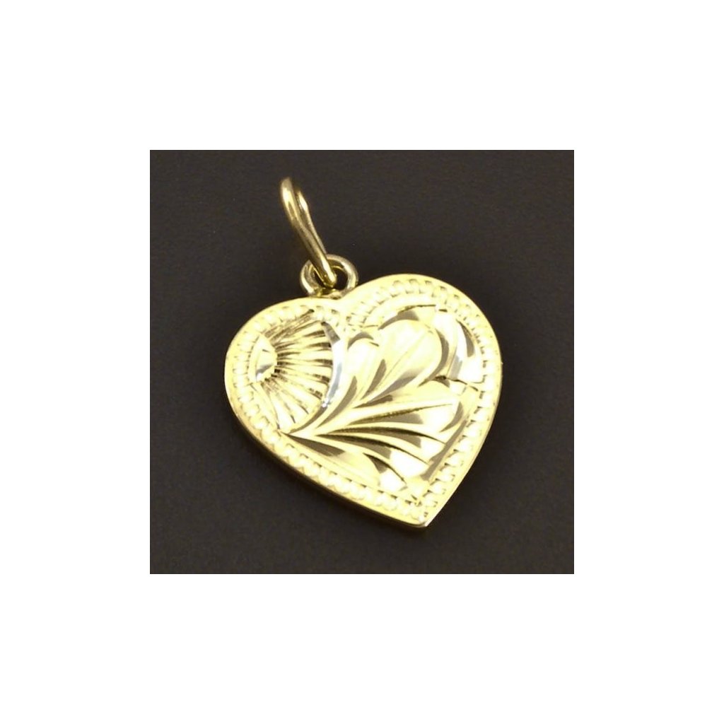 Zlatý přívěs ploché srdíčko s rytinou
