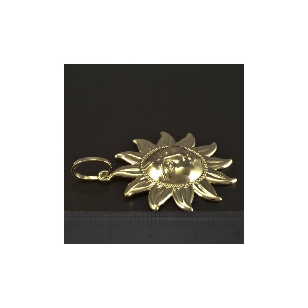 Zlatý přívěsek slunce je vyroben ze zlata ryzosti 14 karátů 585/1000. Zlaté slunce je v lesklém žlutém provedení. Zlatý přívěsek vhodný i na silnější řetízek. Průměr ouška je 11 mm. Průměr přívěsku je 35 mm. Velké zlaté slunce je nepřehlédnutelným doplňkem pro mnoho příležitostí.