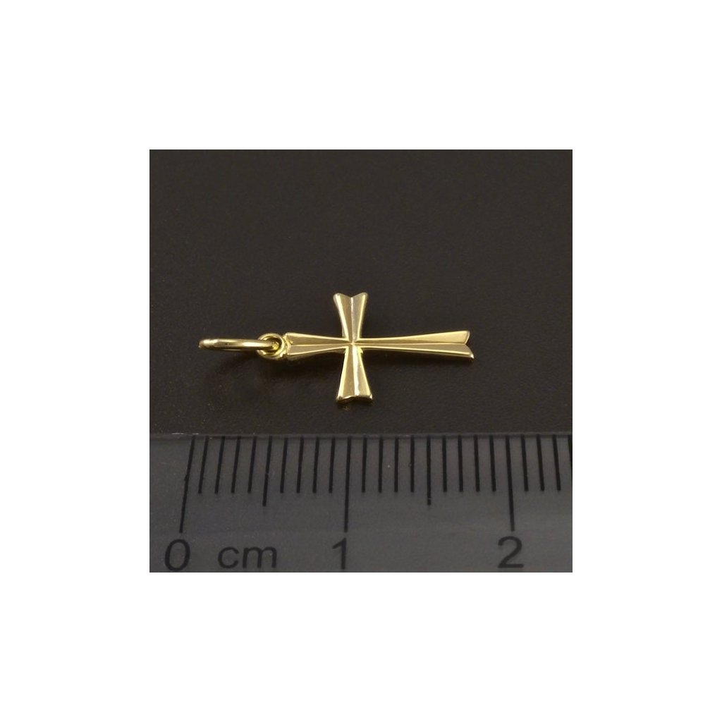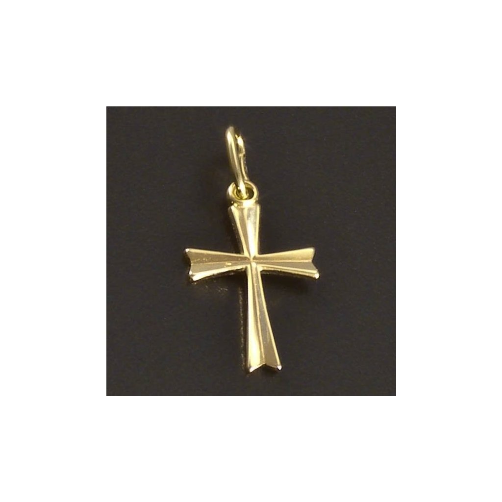 Přívěsek křížek je vyroben ze žlutého zlata ryzosti 14kt 585/1000. Zlatý křížek je v hladkém lesklém provedení. Velikost drobného přívěsku je 18x9 mm. Líbivý zlatý křížek vhodný pro každý den. Tento šperk je vyroben v české zlatnické dílně. Doporučujeme.