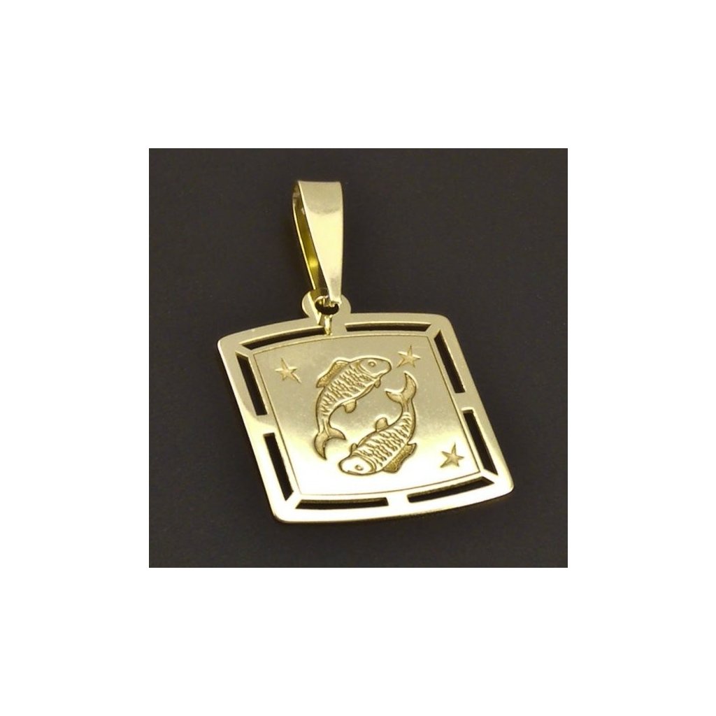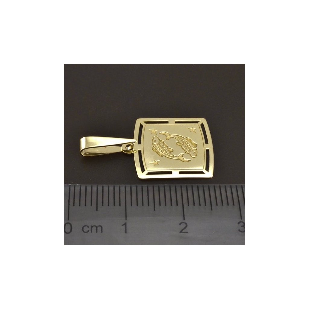 Přívěsek je měsíční znamení ryby 19.2. - 20.3. Tento přívěsek je vyroben ze žlutého zlata ryzosti 14kt 585/1000. Prořezávaný přívěsek v hladkém lesklém provedení zdobí rytý symbol ryby. Velikost celého přívěsku je 26x15 mm. Moderně zpracované měsíční znamení je vhodným doplňkem pro každý den.