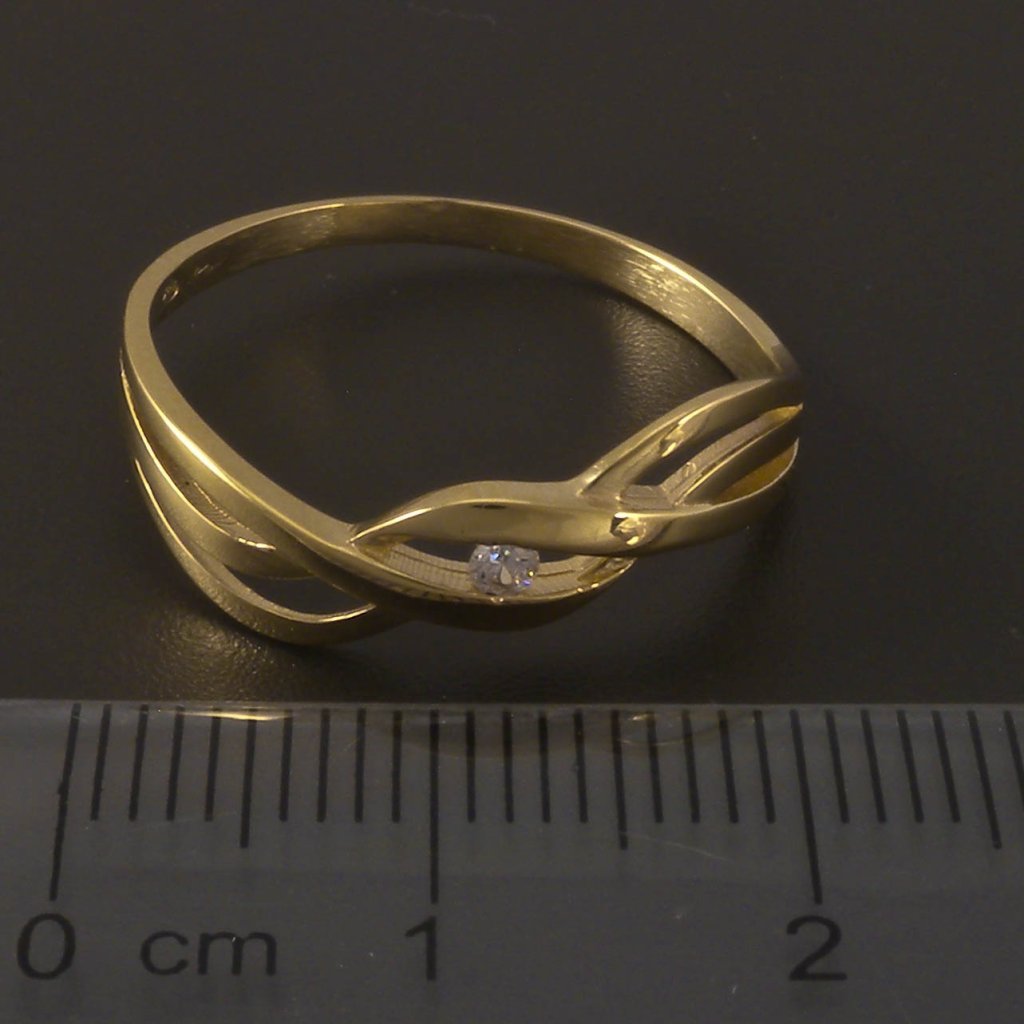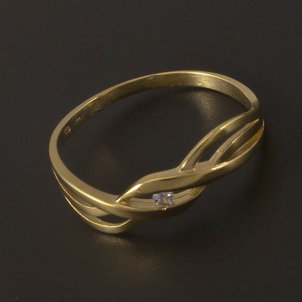Zlatý prsten s propletenými vlnkami nabízí lehký, moderní a velmi ženský styl, který krásně podtrhne každodenní outfit i slavnostní příležitost. Čirý zirkon umístěný uprostřed přináší jemný lesk a tvoří vyvážený kontrast s hladkou linií zlata. Díky příjemné konstrukci se prsten pohodlně nosí a snadno kombinuje s dalšími zlatými šperky, takže se rychle stane oblíbeným doplňkem každé šperkovnice.