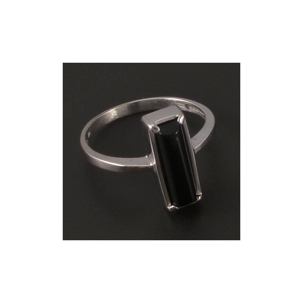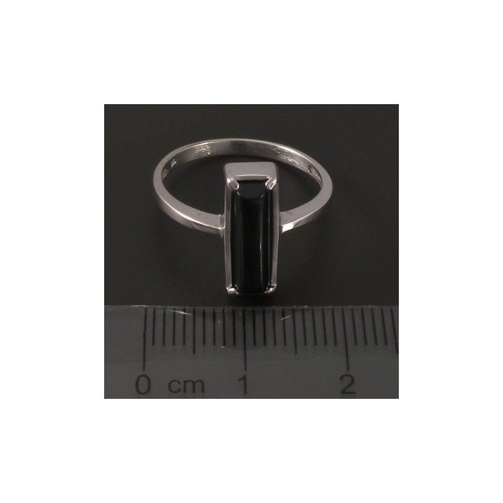 Prsten s černým onyxem bílé zlato