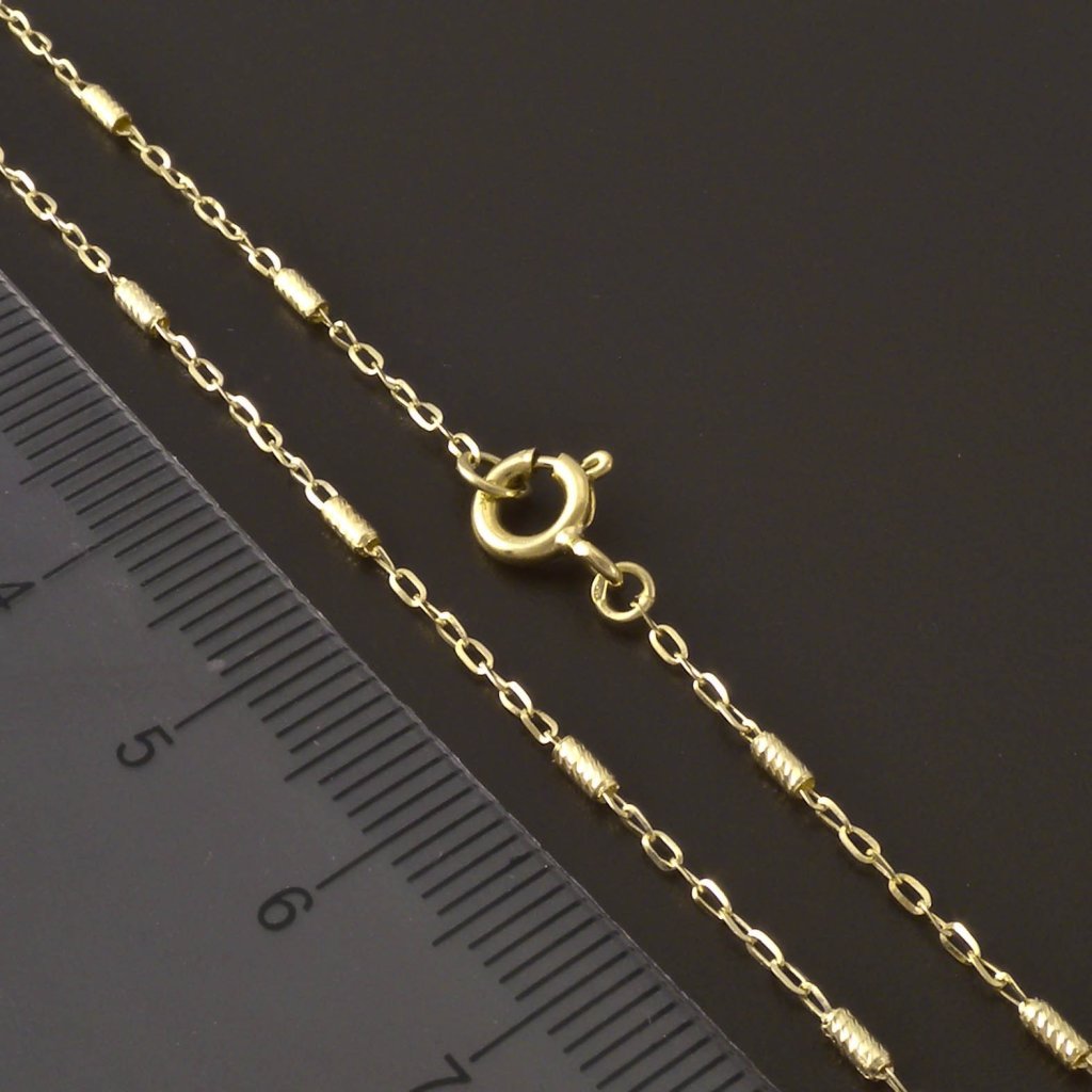Jemnost, elegance a detail – to vše spojuje zlatý řetízek s ozdobami v designu Ankr. Klasická řetízková vazba je obohacena o pravidelně vsazené válečkové prvky, které dodávají šperku lehkost a hravost bez ztráty elegance. Lesklý povrch krásně odráží světlo a decentní zapínání na pérový kroužek zajišťuje pohodlné nošení. Řetízek lze nosit samostatně nebo doplnit o přívěsek podle vlastního vkusu. Skvělý tip na dárek pro každou ženu, která má ráda nadčasovou jemnost se špetkou originality.
