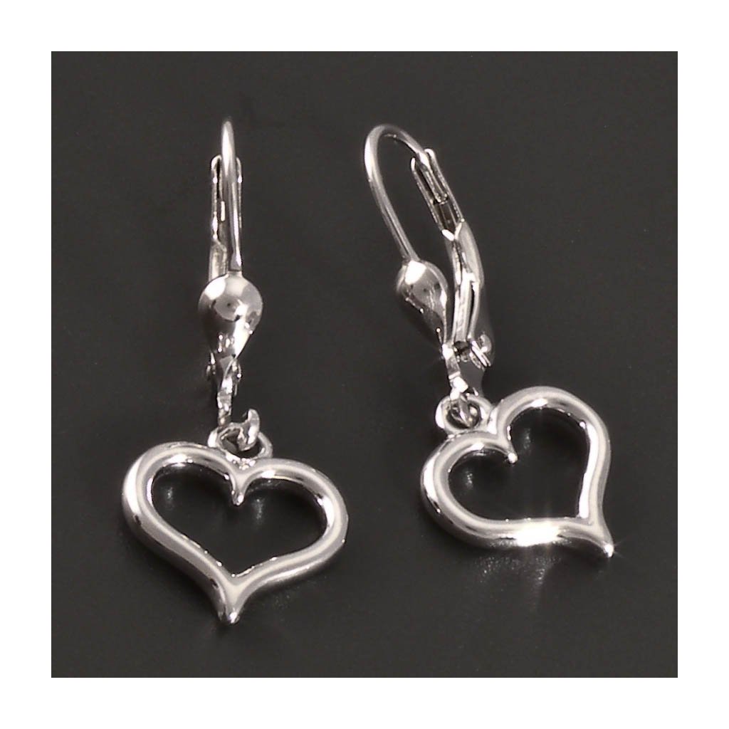 Celostříbrné visací náušnice srdce