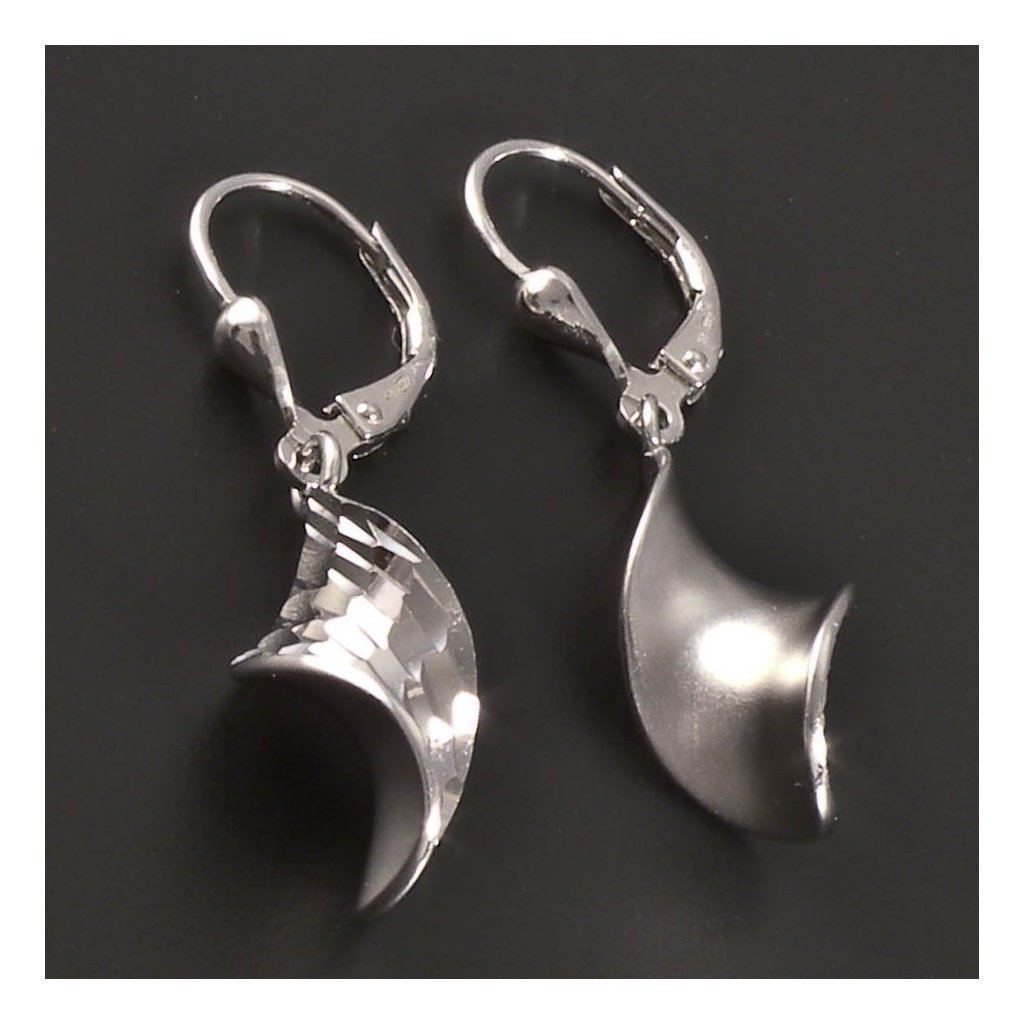 Visací náušnice ze stříbra kombinují precizní výbrus, matný povrch a elegantní kroucený design. Jejich moderní vzhled podtrhuje povrchová úprava rhodiem, která chrání šperk před ztmavnutím a dodává mu dokonale lesklý efekt. Patentové zapínání zajišťuje bezpečné a pohodlné nošení. Tyto náušnice jsou ideální volbou pro ženy, které chtějí spojit originalitu, jemnost a kvalitu v jednom elegantním doplňku.